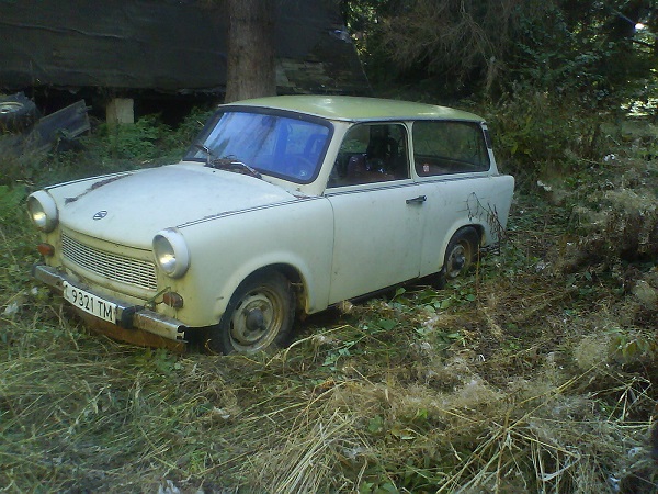 В неделя се разхождах в Боровец и съвсем случайно попаднах на 601 комби оригинален де лукс, запустял в едни високи треви. Веднага ме свързаха със собственичката му, продавал се. Огледах колата набързо и ето какво мога да кажа за нея: стари бели софийски номера, година 88-89 или 90, слонова кост със зелен таван, всички екстри за модела без стъкления люк, нямаше видими ръжди, много запазен салон, натисната предна броня, внос от Германия (т.е. сигурно добре консервиран), оригинален теглич. Всичко друго като изказване от страна на собственичката и мъжа й го слагам в категорията "кръчмарски приказки", т.е неща, които следва да се проверят: колата е в движение, нов двигател, нов съединител, налични документи и най-важното - причината да не е с новите номера е, че е изпуснат срока в КАТ и че досега не са могли да намерят оригиналния двигател по талон, но вече е налице. Колата уж стояла в някакъв сайт за обяви, но така и нищо не намерих. Цената, която собственичката каза е 500 лв, но смятам, че е склонна на голяма отстъпка, включително вариант за транспортиране на колата до новия й собственик. Тел. 0898 957009 - Вени Раденкова. Трабантът може да се види в двора на пансион Раденков, Боровец.