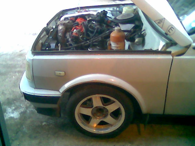 Радвам се, че предизвиква някакьв интерес това което се опитвам да правя. Значи с новите колела не съм я карал много и впечатления почти нямам, само стана малко по висока  , друга информация за колата е ,че е със спортно окачване.  - вози като каруца и е на височина от 7.5см от земята, поне беше със старите колела. Спирачките не са преправяни досега, но скоро и отзад ще мине на дискове, мислих и за серво апарат на спирачките ,но точно там място никво и още се чудя какво да правя. Изпускателната система е правопоточна с 2 резонатора. Има и още работи, но за тях ще пиша по натам ,че в момента не са донагласени.