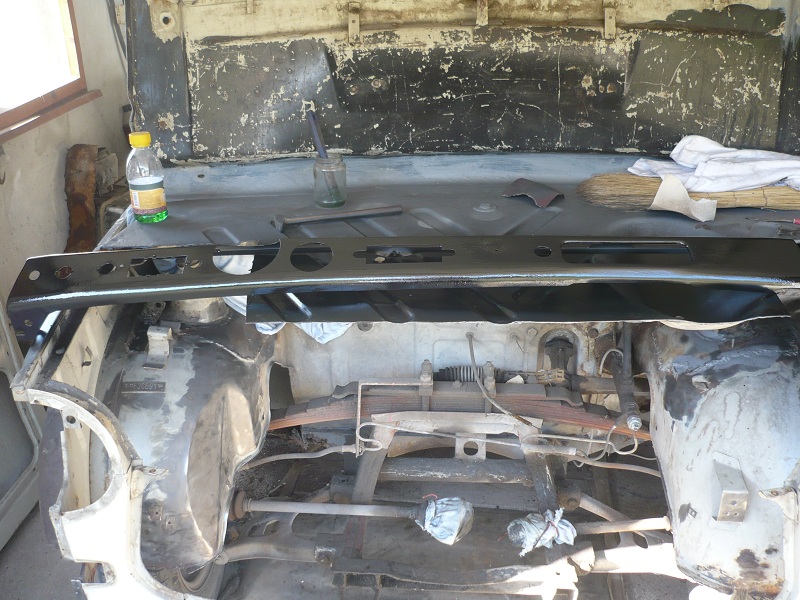 Днес свалих двигателя и скоростната кутия за да мога да разгледам по-добре положението със предната греда. Мислих си, че ще се размина с кърпене но уви. Ръждата и е взела здравето и ще е най-добре да се подмени.