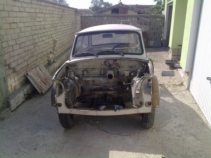На феста си намерих доста от ламаринените части ( магазина в Търново, е можеби най-зареденото място в БГ ), днес говорих с един майстор реставриращ стари коли. Дойде да прогледне трабанта и се уговорихме в началото на Април да му го завлека за изкърпване. Разгледа и комбито и каза, че ще му свали пода и ще го присади на седана. Единствената забележка която имаше е, че предните подкалници няма да се изкърпят с вежди ами ще трябва да се подмени цялата външна част. Каза, че другите части правилно съм ги оцелил отностно подмяната.