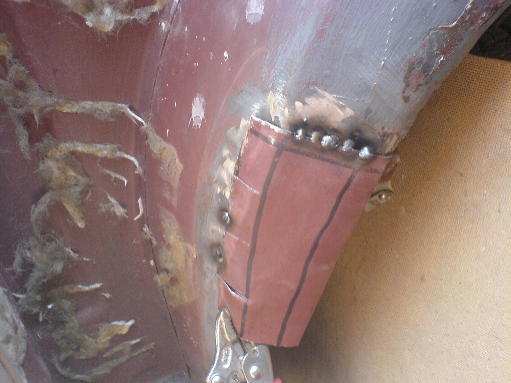След това от резервната задна дясна вежда си одрязох две парчета и закърпих оригиналната, заварката се получи много добре, почти неможе да се разбере къде по веждата е заварявано.