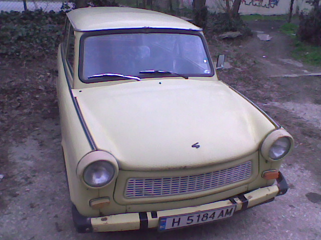 Здравейте съфорумци!Днес взех под "крилото" си Трабант 601 комби,1986 г. и е бананово жълт.Има си кусури,но всичко с времето си.На 20 г. от Шумен съм.Мераклия съм на двутактови машини от малък.Книжка имам от преди 2 г.Нямам голям стаж зад волана.