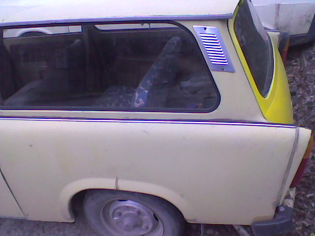 Двата прага под вратите са му кърпени(доста през пръсти)Ударен е леко под задния фар от страната на шофьора.Има си кусури,но като за всеки Трабант на 23 г. който го е карал дядо преди това [smilie=2beers] Цената му е 400лв,ГО до май месец,преглед до септември,платени данъци,винетка...не видях