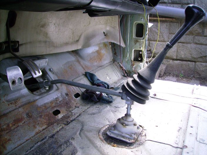 Веднага установихме проблема. Привода за скорости при Голфа се намира над ябълката на лоста, апри вартбурга се намира под нея. Малко рязане заваряване и 4 нови дупки и лоста стана като фабричен (след това се наложи и малко да разширим дупката около привода тъй като при задна и пета опирахме в купето).