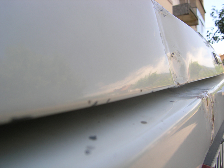Ставаше въпрос за съвсем различно нещо. Ето снимка. Исках да кажа, че двете части /вътрешна и външна / са залепени една за друга. Същото е и отпред. За да стигнеш до външната част, трябва да ги разделиш. Направих друго. Ходих на майстор и той ги издърпа и поизправи. Оттам с кит. Не е перфектно, но не е и както беше. Засега ме удовлетворява. Сега обаче започвам да търся и ако е възможно да закупя всичко ново. Просто погледнато реално ще ми излезе много по - евтино ако успея да намеря въпросните нови и след това да остане само да се боядиса цялата. Това, разбира се, ако са разумни цените на частите. Пример за безпределна лудост: 120лв. за преден външен калник!Един брой!!! Ако реша да го правя сам, едно, както казах вече ще ми излезе по - скъпо и второ не може да стане баш, както трябва. А иначе, ако/като намеря това, което търся ще се заема със сегашните части и ще ги почна сам, да видим как ще ми се получи. Извинявам се, че така избързах с темата.