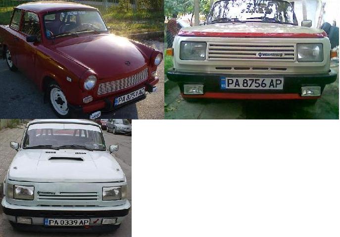 Имам чичо който има 2 трабанта (и 2та бракувани и гният в двора му) и 1 камара части за трабант, както и най малко 2,3 двигателя и подобни, та хванах и си го почнах да си го реставрирам лека полека, като целта ми беше вечер на село като излизам да съм с трабито и само по асфалт, за черни пътища (понеже със земевладелие се занимаваме) подкарах Ладата, а за града съм с Citroena, така хем имам възможност да ходя да търся части, хем колата вече не се вкарва в черни пътища, лека полека си я оправям , има някой неща които на - на трабс но като цяло си е ГОООЛЯМ + :D също с голяма музика вътре (това скапа акумолатора ма ко ти пука) та кат минавам бавно от баса ме чуват доста добре
