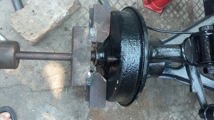 Здравейте колеги имам един проблем, не мога да си сваля барабаните на бъгито те са от старите за гайка 36 понеже бъгито е правено от 2 моста от трабант задния мост който е с двигателя е с по новите главини и иглени карета с гайка 32 а предния ми мост е от по-стар модел трабант от тези с гайка 36. Тъй като не можах да си намеря скоба за сваляне на барабани си направих избивач, на задните барабани действа перфектно с 2 удара барабаните излизат като тапи, но предните не помръдват и двата и милиметър, явно има още нещо което се разглобява което аз не знам освен гайката и законтрящата го шайба под нея, ето и снимки да видите за какво ви говоря. Моля кажете ми какво пропускам и как да сваля тези барабани поздрави! Ако някой иска да види и бъгито ще кача някоя снимка :)