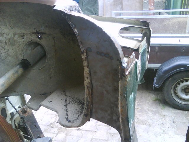 Следкато разчистих бодито при мен, положението се оказа "швейцарско сирене" и ще трябва да присаждам ( а за съжаление направих грешката да резна същия от комбито преди да разчистя за да видя за какво всъщност иде реч ), защото ако взема да огъвам ламарини първо няма да стане хубаво, второ ще ми се вземе здравето.
