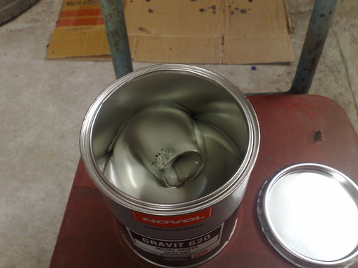 Ето какъв грунд използвах: Това е продукта,който мисля да нанеса след грунда,2-3 ръце ще заличи заварките и ще предпази от корозия,казват че е по добър от " Боди' и цената му е по висока, полиуретанов и след него вече ще нанеса боя,с цвета на купето. Между другото изчистих старата боя от таблото,заварих ненужните отвори и намазах с преобразовател.