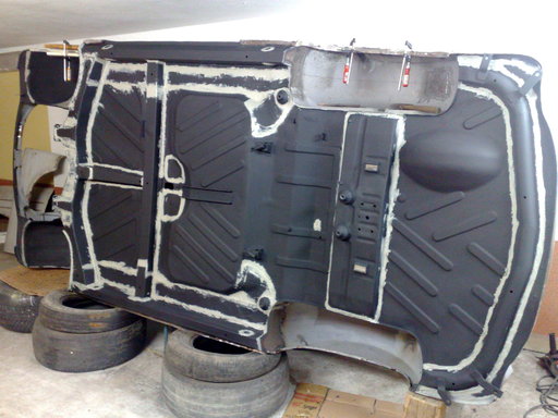 Здравейте колеги малко снимки, Китвах с NOVOL 620 за да залича заварките и за защита , от двете страни на пода, материала седи гумен и мек след изсъхване. Според мен се получи добре и когато напръскам с NOVOL 600 ще стане еднородно и ще изглежда добре.
