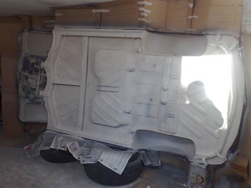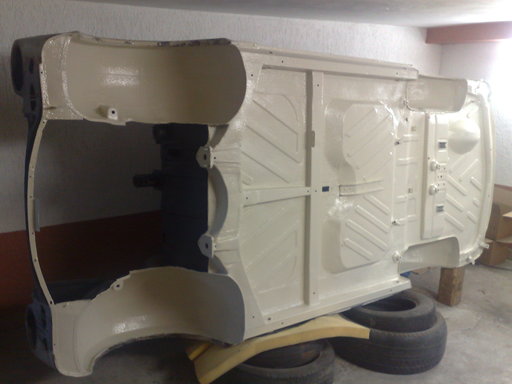 Днеска завърших бояджийските работи по пода на колата,минах с акрилна боя и ще започвам да монтирам задното окачване.