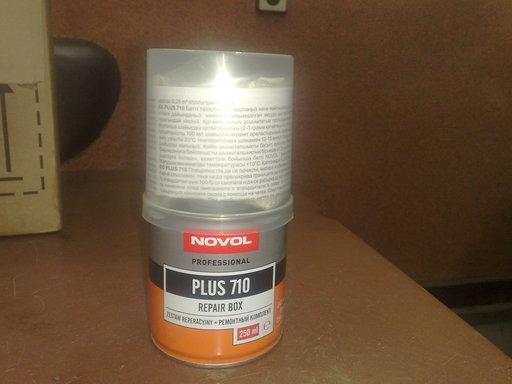 Епоксидна смола и плат,за да запълня малките дупчици по задният капак и вратите,там където не е нужно да се изкърпва.