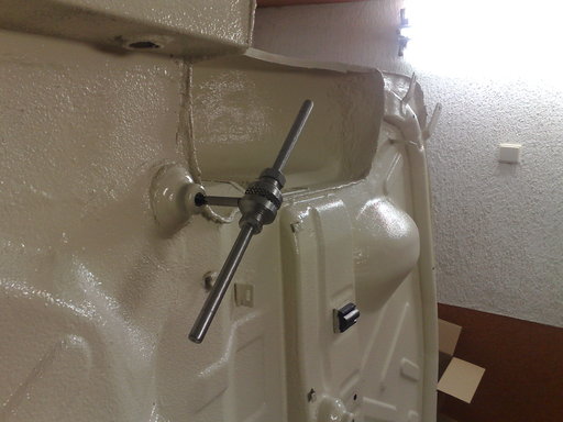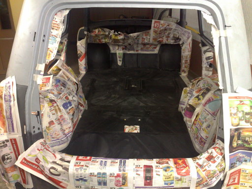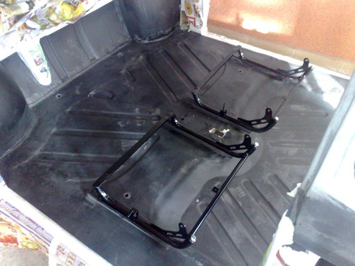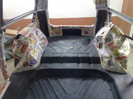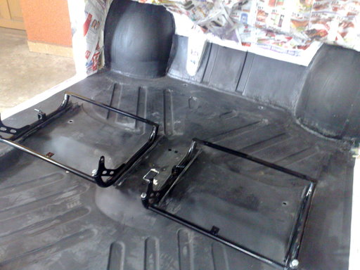 Здравейте.малко информация по моя проект.Облепих пода и е готов за ръсене с шагрето.Пробих всички необходими отвори към кухините и проверих за последно как се движат седалките в подовите релси.Ето и малко снимки:
