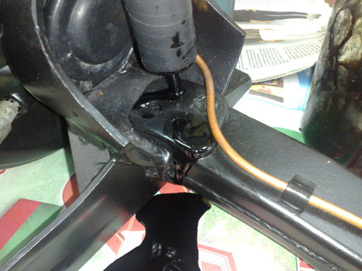 Решил съм да вкарам отработено масло навсякъде и дори в кухината където се хваща носача в предният край,преди да завия болта ще впръскам 1-2 спринцовки масло.