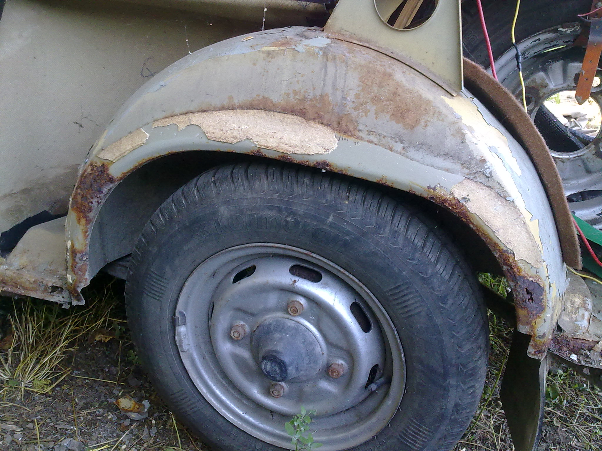 Отидох на село с идеята да кърпя праговете на жълтия трабант. Свалих калниците и за съжаление това, което четох в темата на siso се потвърди....отвън всичко перфектно, а отвътре веждите изгнили.