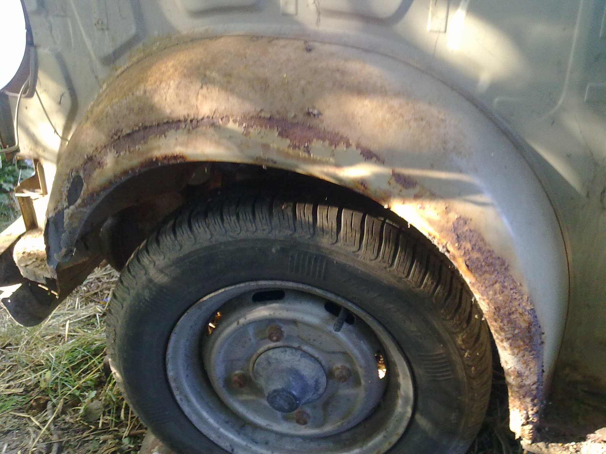 Недей се травмира толкова,все пак това нито е носеща част нито се вижда отвън , така че може да го направиш как да е.Изрежи изгнилото, изрежи си ламаринка /тънка/ намажи я със силикон и я хвани с нитове.Дефакто нитовете служат само да оберат кръпката към другата ламарина ,а държи силикона.Има едно полиуретаново лепило дето е по-здраво,прилича на силикон ще стане вечно.