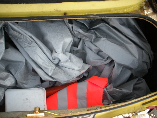 Това зеленото са му врътнати 1500-2000км от 2005 насам. Общо взето го ползвах да се науча да карам, а след това като работен кон - пренос на материали, извозване на боклук (да, селото ми е толкова пробито, че няма дори кофи), ходене за риба, ходене офроуд по гората. Кофти е орязано, но окачването е разтоварено и така е много по-проходимо от нормален трабант.