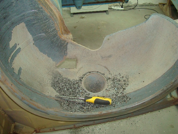 След като го обърнах по таван, се захванах бавно, търпеливо и много внимателно да отстранявам покритията на сухо, без да наранявам металната повърхност. Хванах им цаката, но ми отне доста време. Те се отделяхя като черупка на сварено яйце, а под тях на места имаше ръжди, но те не са толкова стряскащи.