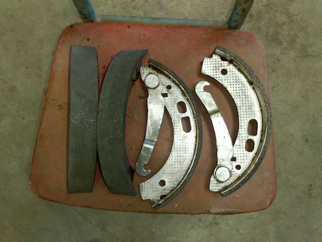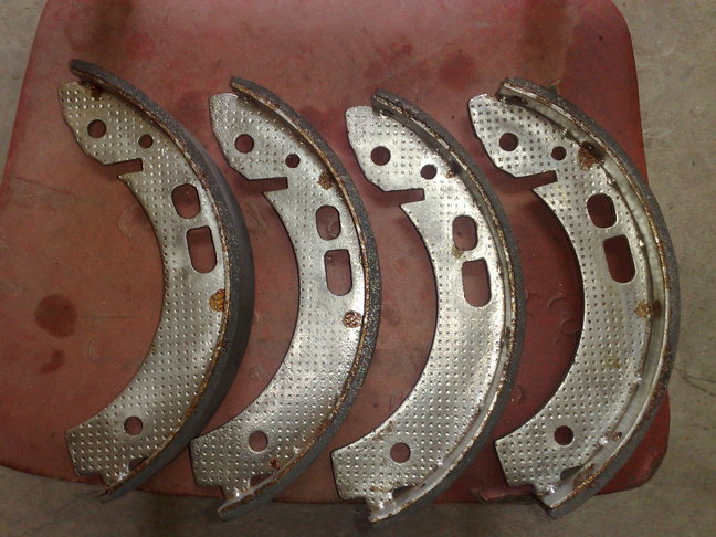 Днес изчистих задните накладки и ги занесох да ми залепят 4,5мм. феродо,защото почистих на струг барабаните и