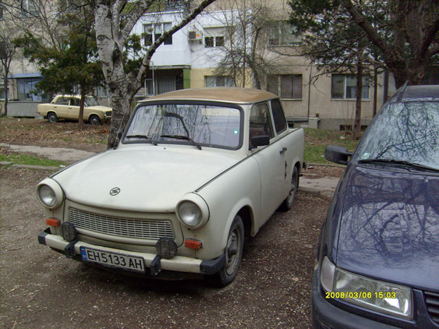 Здравей,аз съм момчето от което купи трабанта.Нещо ми домъчня за него и погледнах да видя какво става във форума и хоп....красавеца се появи :D .Много се радвам че го продадох на теб,продължавай само така!Ако се сещаш,като го прехBърляхме,какво каза на нотариуската: "Този Трабант ще го гледате по телевизията!".Наистина го гледахме.Между другото,фолиото за задния прозорец съм забравил да ти го дам...Някой път като идваш към Плевен се обади да се видим ако искаш.Ето една снимка да видят хората разликата "Преди-Сега"(ама той пък много мръсен тука бее...) :mrgreen: .