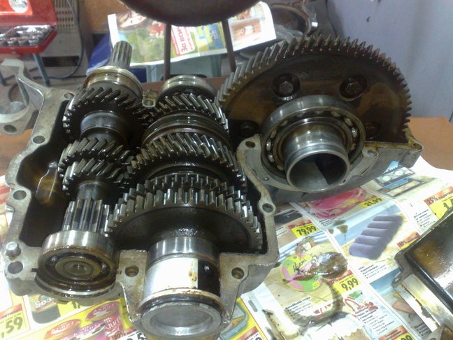 има 2 модела,но ако се наложи да сменям нещо не знам дали има части,аз лично имам само кошничката и не знам от кой модел е.Смених лагерите на единият вал,общо са 4лагера,3 -6304 сложих НРБ ВМЗ, 1-6206 този ще бъде FAG.При мен и четирите лагера са сачмени,при някои кутии.лагера,който е до амбреажната опашка е ролков.Относно лагерите на диференциала са 6013 и са набити много леко към него.Ето малко снимки: