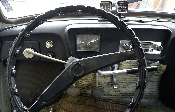 Колеги, имам един проблем - в лявата част на волана има отчупено парче, което в последствие е било залепено (не много старателно и точно). Приемам всякакви идеи как мога да го оправя. Да намеря друг волан от 600 е малко невъзможно... След като го оправя смятам да боядисам волана или отново в черно, или волана и таблото в бяло. Засега просто ми трябва идея как мога да го оправя.