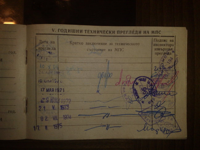 Колеги,днес станах вече собственик на Трабант 600 по документи,самата кола ще я взема като се пооправи времето.Искам да споделя нещо което може би не се е случвало друг път.Колата е произведена 1965г. и през 1968 е купена от сегашния собственик,който е роден 1933 г и днес ми го прехвърли сина му.Такъв собственик аз друг път в живота си не съм виждал,човека е бил толкова стриктен и е записвал всичко което се е случвало с колата от когато е произведена,колко километра и минавал всеки месец,при всяко ходене в КАТ е записвал какво е правил,колко пари е давал името на служителя,номера на стаята,имал е лек удар и е написал името на човека коЙто го ударил,милиционера име адреси и на двамата не е за вярване.Колко и какво масло е слагал всяка година и ред други извънземни записвания,имам оригиналната книжка при закупуването на трабанта,карта на България от 1965 година и ред други документи,първо издание на "Аз ремонтирам Трабант" с оригинална ел. схема.Имам още за споделяне,но сега отивам да видя какви части ми даде човека от мазата.Скоро ще кача снимки.