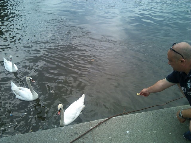 Като за начало на деня исках да видим от близо катедралата и осветената крепостна стена, които предната вечер ме бяха грабнали. Както вече споменах къмпингът ни се намираше на остров, така или иначе трябваше да прекосим реката. Имаше мост по който минахме с Траби, имахме бански, ама... не ми се вързаха на акъла. След кратка разходка по брега открихме лодка и моряче, което за едно евро ни прехвърли на другия бряг. До катедралата имаше приятно леко изкачване по хълма. А отгоре - красива гледка!