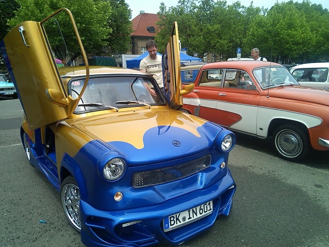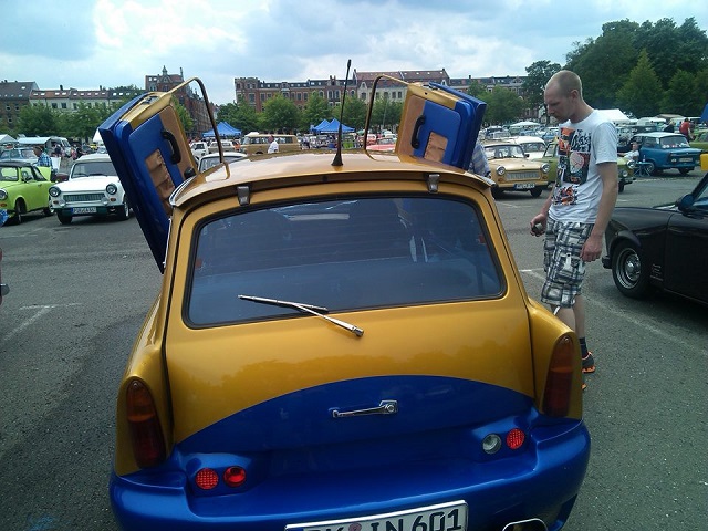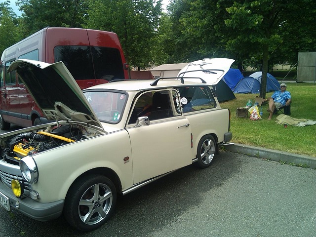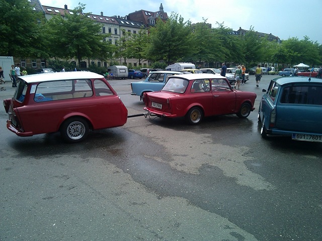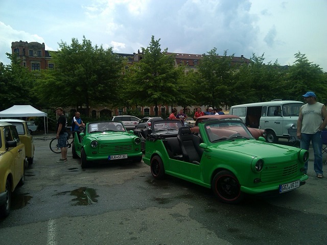 И така, след 1800км. успяхме, живи, здрави, без проблеми, да се паркираме на площада в Цвикау. Всичко около нас - трабанти, трабанти, трабанти. След преброяването - 7 български трабанта. Поздравявам всички от компанията!