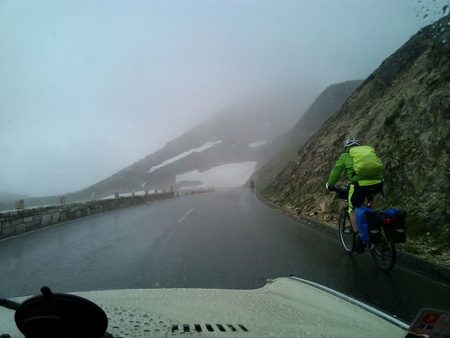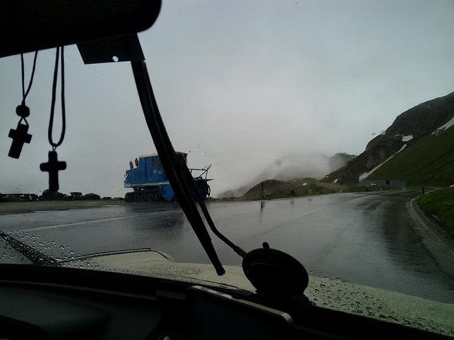Цяла нощ ни валя, ама ние си спахме като къпани - и в буквалния и в преносния смисъл на думата. На сутринта в рецепцията гледахме на TV видео на живо от върха, към който се бяхме устремили. Мъгла - нищо се не види, но,..., ние сме твърдо решени - ще щурмуваме върха. Изкачихме се на 2 хиляди 500 и нещо метра, браво на четирите трабанта и шофьорите, но както казах гледката беше - абе, гъста, гъста мъгла.