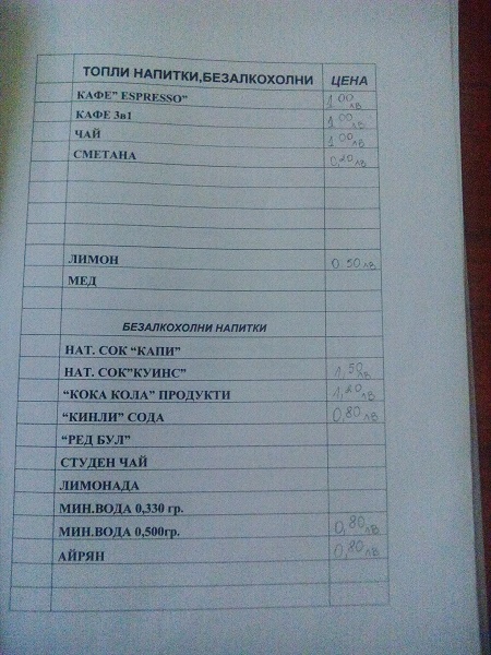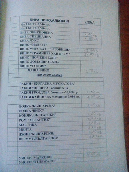 Цените на барчето са от менюто. Няма да има предварително меню, който каквото му се яде.