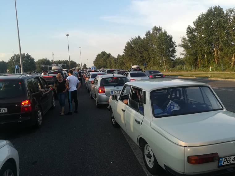 Термостата почна да ни прави проблем още в България, затова го разкарахме преди да тръгнем, но дори така колата и ние специално трудно понасяхме уникалната жега, завладяла цяла Европа. Горещината беше неописуема, на изкачванията и на равните участъци в ранния следобед карахме на включено парно, само и само за да не ни свети жълтата лапма на температурата. Сърбия ни посрещна с километрична опашка и ни изпрати в Унгария с такава опашка, пълна с гастарбайтери, че дори не се виждаше сръбския граничен пункт. 3 часа ни отне да влезем в Унгария на граничния пункт от последната снимка. Това беше и момента, в който установихме, че включвателя на перката на радиатора загина и трябваше да спираме, отворим капака, вържем на късо клемите, за да не прегреем машината всеки път, когато ни хващаше някое задръстване. Влязохме в Унгария твърде късно заради чакането и идеята да нощуваме в Будапеща отиде по дяволите и затова останахме в близкия унгарски град Сегед.