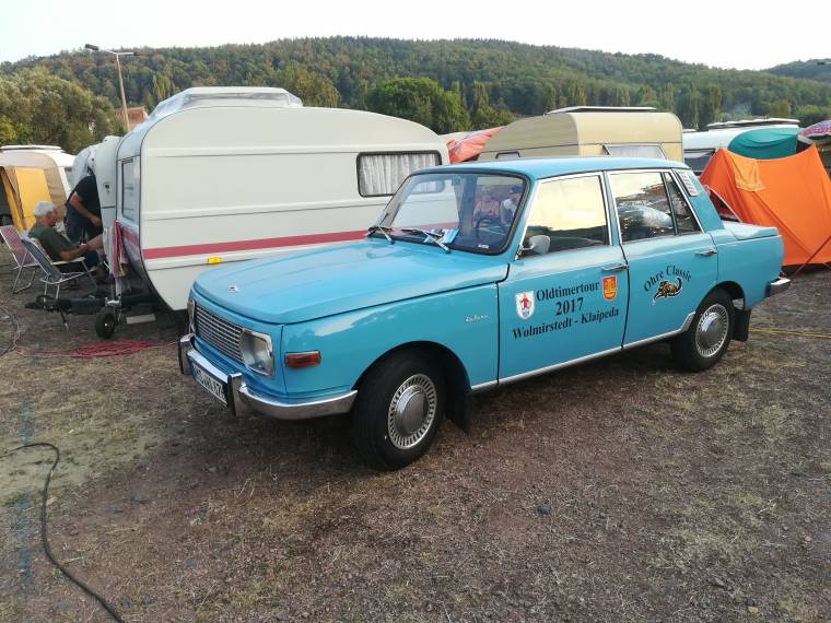 Така на плаца пристигнахме, когато пристигат организаторите и тези, идващи от други страни. На следващия ден е официалното откриване на събитието и тогава се допускат германските коли. Отпред на улицата в града вече беше започнала да се извива една голяма опашка от чакащи всякакви видове и модификации Вартбурзи, на които са закачени всякакви видове ГДР каравани. Тези хора ще прекарат нощта вън и ще бъдат допуснати на следващия ден. Един от чакащите беше перфектен бял двуврат спортен Вартбург 311, което може само да ви даде бегла представа за сериозността на организаторите и стриктното спазване на зададените правила.
