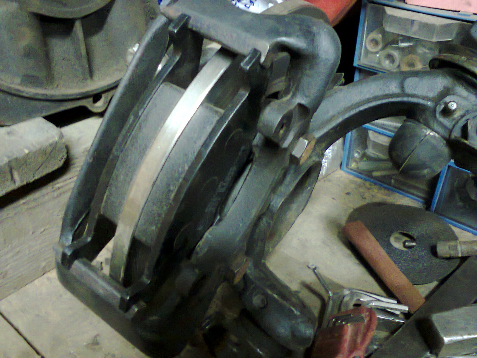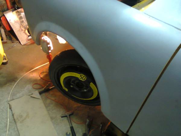 Монтирах ги моите. Взех си и преден спирачен маркуч от голф 3 - става доста по-културно от сглобяваниците с двата маркуча от вартбург. Само трябва да се прекара така, че да не опира в ресора. Оправих го, ама не го снимах. Бройката за 13 лева. Продават се във всеки магазин за авточасти. Чудя се дали не се мажеше нещо отзад на накладките - медна грес, ама за какво е незнам Май да залепват за буталото ли какво - кажете, че не се сещам. Взех и една резервна гума 14-ка, 3 и1/2 J със et 42 от волксваген от моргата. Пасва отпред без фланец.