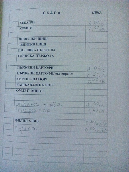 Цените на барчето са от менюто. Няма да има предварително меню, който каквото му се яде.